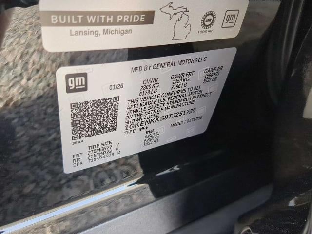 ELEVATION PREMIUM PACKAGE includes (ABE) 7-Passenger seating, (H7K) After Dark CoreTec or (H7L) Gideon Gray CoreTec seating, (A7J) 6-way power passenger seat adjuster, (AT9) passenger power lumbar seat adjuster, (Q76) 20" aluminum wheel, (Q3N) 20" all-season blackwall tire and (UG1) Universal Garage door opener, LUXURY PACKAGE includes (AKK) acoustic style windshield, (CMO) heated wiper park, (KA6) heated rear outboard seats and (UV6) 8" Diagonal Head-Up Display, SEATING, 7-PASSENGER (2-2-3 SEATING CONFIGURATION) with 2nd row flat-folding captain's chairs with Smart Slide and 3rd row manual-folding 60-40 split-bench seat, LPO, BLACK LUG NUT AND WHEEL LOCK KIT includes 20 lug nuts, 4 locks and 1 key, ENGINE, 2.5L TURBO DOHC SIDI with Variable Valve Timing (VVT) (328 hp [244 kW] @ 5500 rpm, 326 lb-ft of torque [442 N-m]) @ 3500 rpm) (STD), TRANSMISSION, 8-SPEED AUTOMATIC (STD).