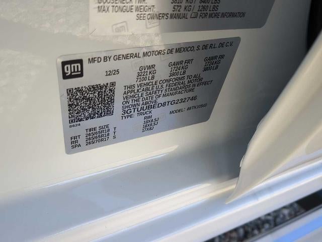 ENGINE, 5.3L ECOTEC3 V8 (355 hp [265 kW] @ 5600 rpm, 383 lb-ft of torque [518 Nm] @ 4100 rpm); featuring Dynamic Fuel Management (Includes (KW7) 170-amp alternator and (MHT) 10-speed automatic transmission.), X31 OFF-ROAD PACKAGE includes Off-Road suspension, (JHD) Hill Descent Control, (NZZ) skid plates, (K47) heavy-duty air filter and X31 hard badge (Includes (B1J) rear wheelhouse liners. Includes (UHN) 18" 6-spoke machined aluminum wheels with Dark Grey Metallic accents, (XCK) 265/65R18SL all-terrain, blackwall tires and (NQH) 2-speed transfer case. Includes (N10) dual exhaust. ASSIST STEPS, CHROME WHEEL TO WHEEL, LPO, ALL-WEATHER FLOOR LINER, 1ST AND 2ND ROWS (dealer-installed), REMOTE START PACKAGE includes (BTV) Remote Start, (UTJ) Theft-deterrent system and (C49) rear-window defogger, AUDIO SYSTEM, 13.4" DIAGONAL PREMIUM GMC INFOTAINMENT SYSTEM WITH GOOGLE BUILT IN APPS SUCH AS NAVIGATION AND VOICE ASSISTANCE, INCLUDES COLOR TOUCH-SCREEN, MULTI-TOUCH DISPLAY, AM/FM STEREO Bluetooth® streaming audio for music and most phones; featuring wireless Android Auto® and Apple CarPlay® capability for compatible phones (STD), TRANSMISSION, 10-SPEED AUTOMATIC, (COLUMN SHIFTER) ELECTRONICALLY CONTROLLED with overdrive and tow/haul mode. Includes Cruise Grade Braking and Powertrain Grade Braking.