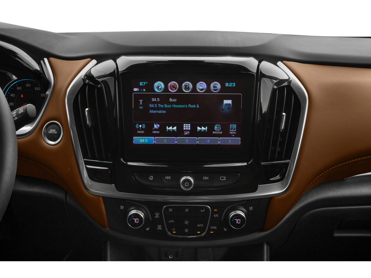 REDLINE EDITION includes (SS8) 20" Gloss Black painted aluminum wheels with Red accents, Gloss Black window surround, Dark tail lamps, Black mirror caps and door handles, Black painted rocker and wheel openings with Black Ice inserts, Black Ice grille and license plate applique, Black Ice fog lamp bezels, (CG6) Black Traverse badges with Red outline, Black Chevrolet bowties, Black roof rails, (C3U) Dual Skyscape 2-panel power sunroof and (V92) trailering equipment, SUNROOF, DUAL SKYSCAPE 2-PANEL POWER with tilt-sliding front and fixed rear with sunscreen, TRAILERING EQUIPMENT includes (V08) heavy-duty cooling system and trailer hitch, DRIVER CONFIDENCE II PACKAGE includes (UHY) Low Speed Forward Automatic Braking, (UEU) Forward Collision Alert, (UHX) Lane Keep Assist with Lane Departure Warning, (UE4) Following Distance Indicator, (UKJ) Front Pedestrian Braking and (TQ5) IntelliBeam headlamps, AUDIO SYSTEM, CHEVROLET MYLINK RADIO with Navigation, 8" diagonal color touch-screen and AM/FM stereo, includes Bluetooth® streaming audio for music and most phones; featuring Android Auto® and Apple CarPlay® capability for compatible phones (STD), ENGINE, 3.6L V6, SIDI, VVT (310 hp [232.0 kW] @ 6800 rpm, 266 lb-ft of torque [361 N-m] @ 2800 rpm) (STD), TRANSMISSION, 9-SPEED AUTOMATIC (STD).
