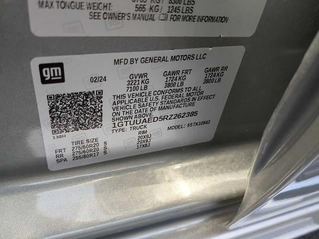GRAPHITE EDITION includes (U2K) SiriusXM, (VT5) body-color rear bumper, (VB5) body color front bumper, (B30) color-keyed carpeting, (BTV) Remote Start, (UTJ) Theft-deterrent system, (RD3) 20" 6-spoke High gloss Black painted aluminum wheels, and (QAB) 275/60R20 all-season tires and Body color upper grille. Includes (V76) recovery hooks on 2WD models. ENGINE, 5.3L ECOTEC3 V8 (355 hp [265 kW] @ 5600 rpm, 383 lb-ft of torque [518 Nm] @ 4100 rpm); featuring Dynamic Fuel Management (Includes (KW7) 170-amp alternator and (MHT) 10-speed automatic transmission. CONVENIENCE PACKAGE includes (QT5) EZ Lift power lock and release tailgate, (AKO) tinted glass, (UF2) LED cargo bed lighting, (C49) rear-window defogger, (K34) cruise control and (DLF) outside power mirrors. LPO, ASSIST STEPS, CHROMED TUBULAR, 6" RECTANGULAR (dealer-installed), BEDLINER, SPRAY-ON Pickup bedliner with GMC logo, AUTO-LOCKING REAR DIFFERENTIAL, LPO, ALL-WEATHER FLOOR LINER, 1ST AND 2ND ROWS (dealer-installed), GLASS, DEEP-TINTED, MIRRORS, OUTSIDE HEATED POWER-ADJUSTABLE, AUDIO SYSTEM, GMC INFOTAINMENT SYSTEM WITH 7" DIAGONAL COLOR TOUCH-SCREEN, AM/FM STEREO with seek-and-scan and digital clock, includes Bluetooth® streaming audio for music and select phones; featuring wireless Android Auto® and Apple CarPlay® capability for compatible phones (STD), TRANSMISSION, 10-SPEED AUTOMATIC, (COLUMN SHIFTER) ELECTRONICALLY CONTROLLED with overdrive and tow/haul mode. Includes Cruise Grade Braking and Powertrain Grade Braking.
